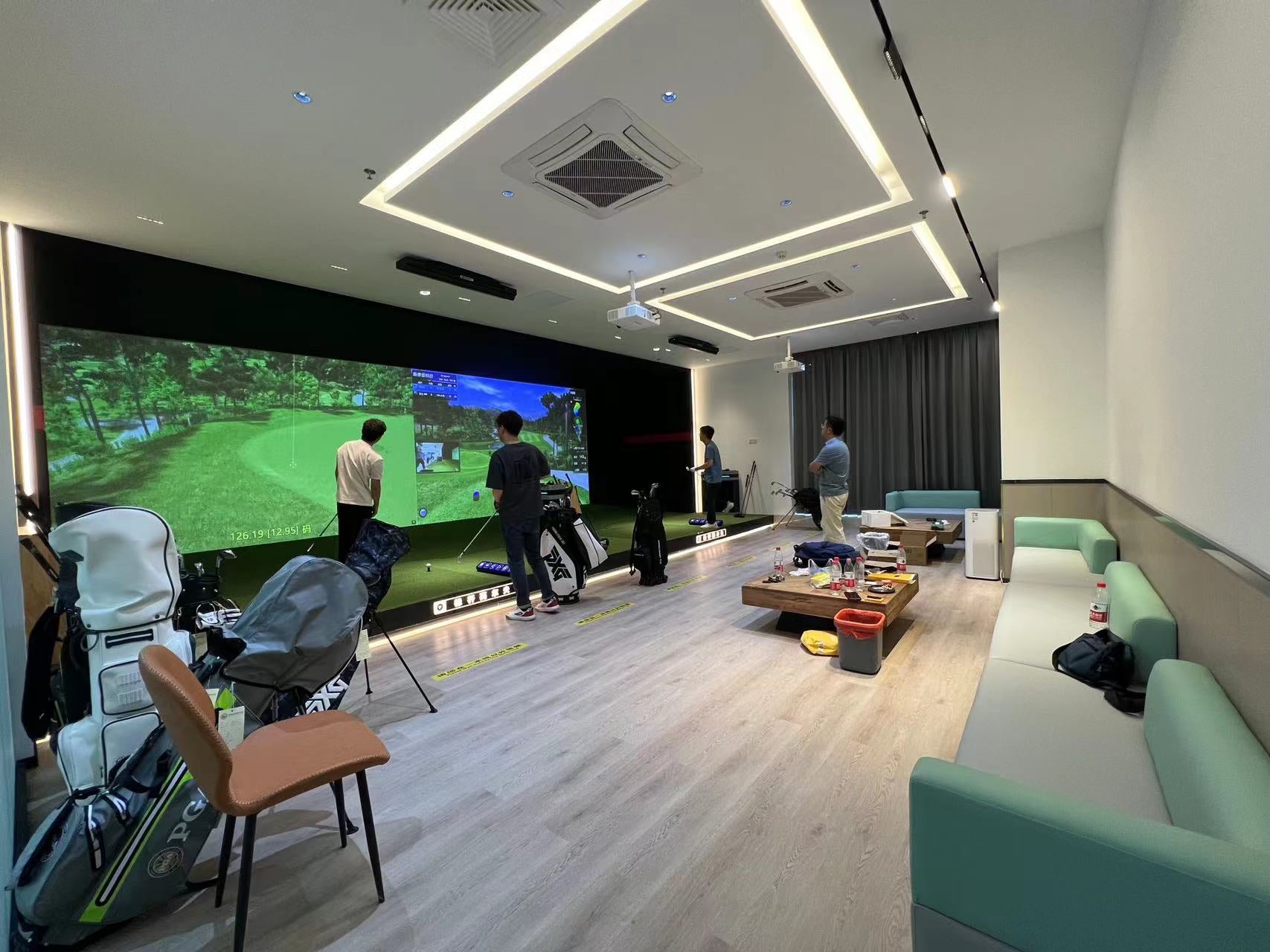 A refined tea lounge invites guests to relax, enjoy a quiet chat, or host business discussions. Whether entertaining friends, sharing stories, or closing a deal, visitors can unwind in style — then pick up a club for an energizing round. To add even more fun, the GOLFJOY simulators feature a built-in KTV mode, letting customers sing their favorite tunes after a session.